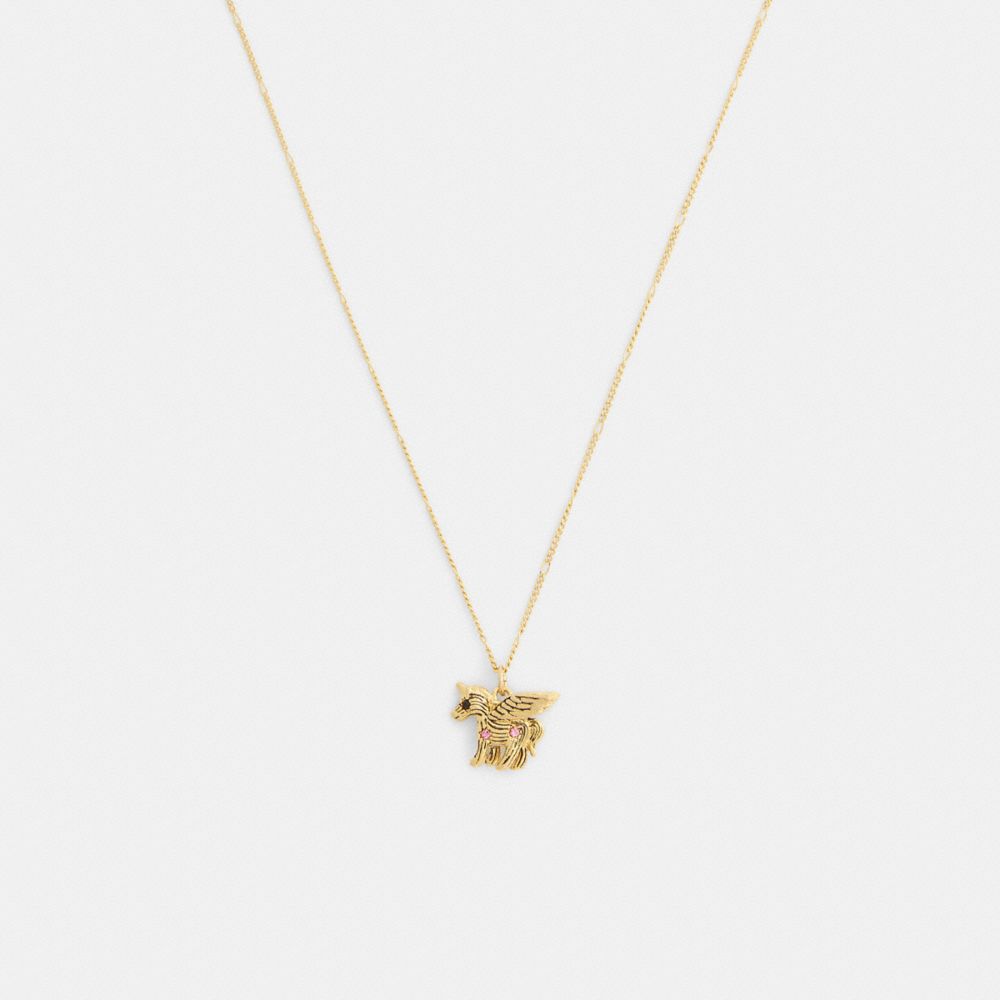 Featuring our flying Coach Pegasus, this brush textured necklace adds a playful touch to any look. It’s finished with an adjustable clasp closure detailed with our diminutive hangtag.