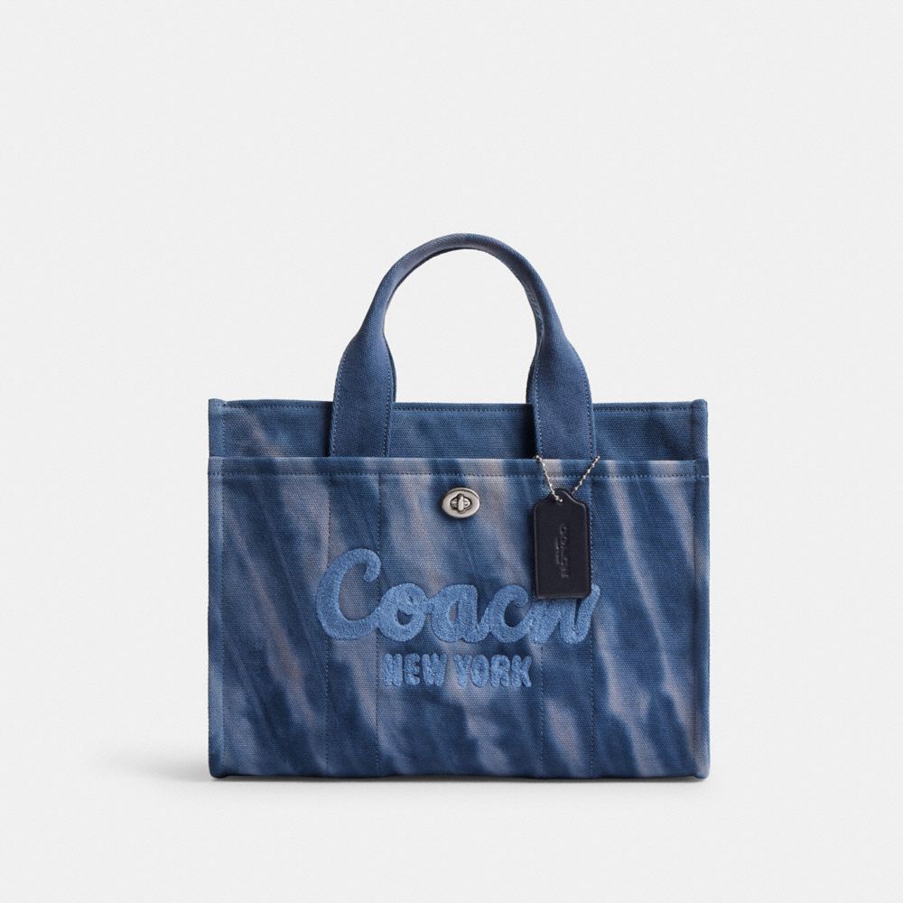 Carry as much (or as little) as you like with our lightweight Cargo tote. Detailed with our cursive Coach script embroidery and iconic turnlock closure, this spacious carryall has an open interior with room for a 13" laptop, two outside pockets for easy organization and a removable webbing strap for shoulder or crossbody wear. Specially tie-dyed with our sophisticated spin on the classic pattern, this versatile style is made with cotton sourced from farms that use regenerative agricultural practices* and inspired by our commitment to reducing our impact on the planet. Now no matter where you go with it, you’ll always be toting around a little extra love for the planet.