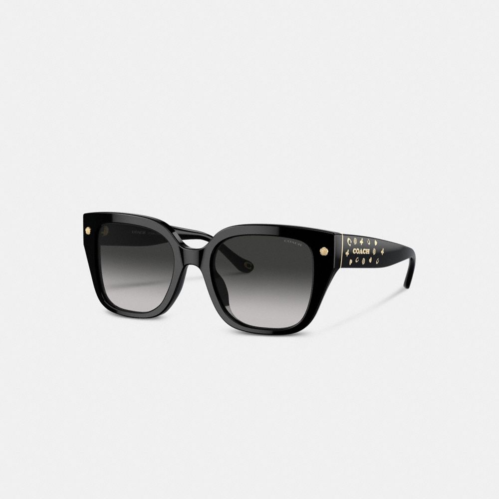 A scattering of our signature motifs at the temple adds iconic Coach style and a touch of shine to these oversized sunglasses. Featuring a lightweight and durable construction, they offer full UV protection and come packaged in a protective case with a microfiber cleaning cloth.