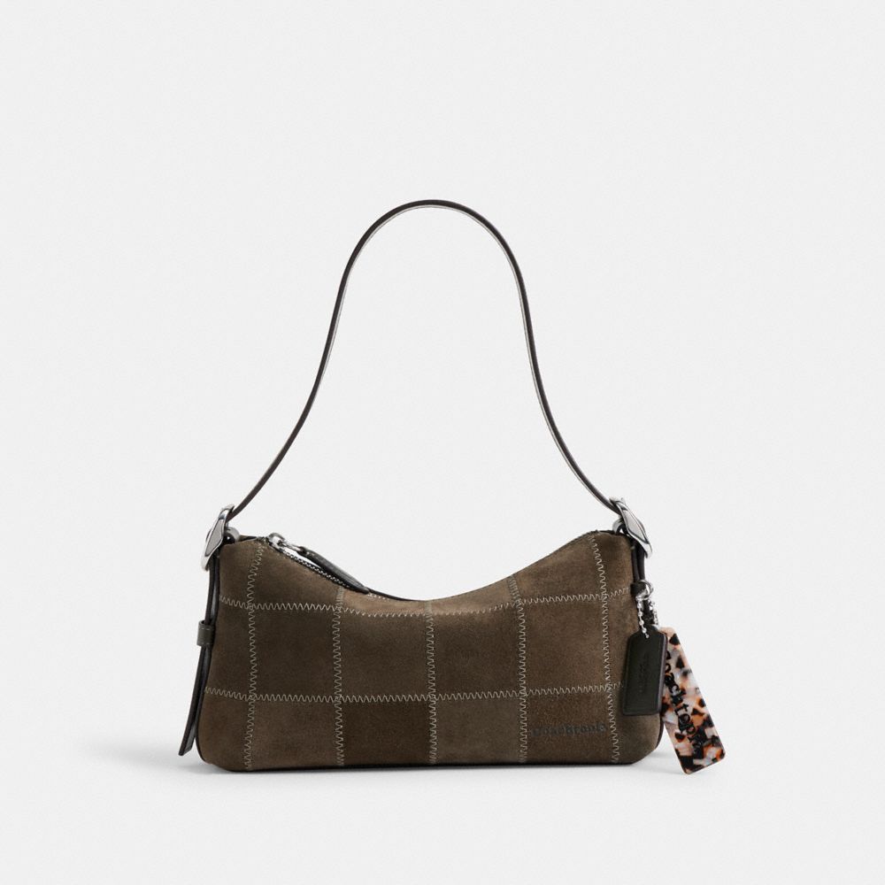 This shoulder bag style is ingeniously crafted of the suede leather scraps left over after a Coach Tabby Bag has been cut from a leather hide. Complete with two detachable straps (one shoulder, one crossbody), it secures with a zip-top closure and holds your everyday things—keys, wallet, sunglasses and more. Each bag’s appearance is unique and will continue to develop more character over time.