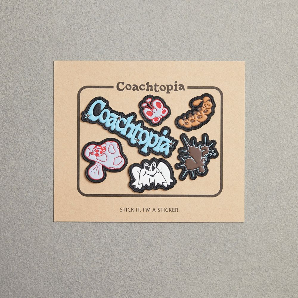 Make it more Coachtopia: this sticker set recreates a set of fun illustrations by California-based artist and community member Mikey Poster. It comes in Upcrafted™ leather, a unique artisan material made by sewing together squares of scrap leather left over from the production of Coach leather goods.