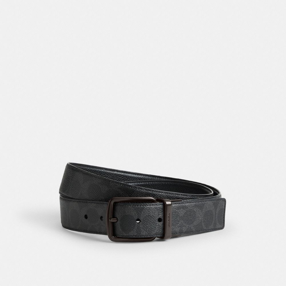 This handsome reversible belt offers two different looks in one design featuring our Signature canvas on one side and pebble leather on the other. Using the simple instructions, it cuts to size with a pair of scissors for the perfect fit.