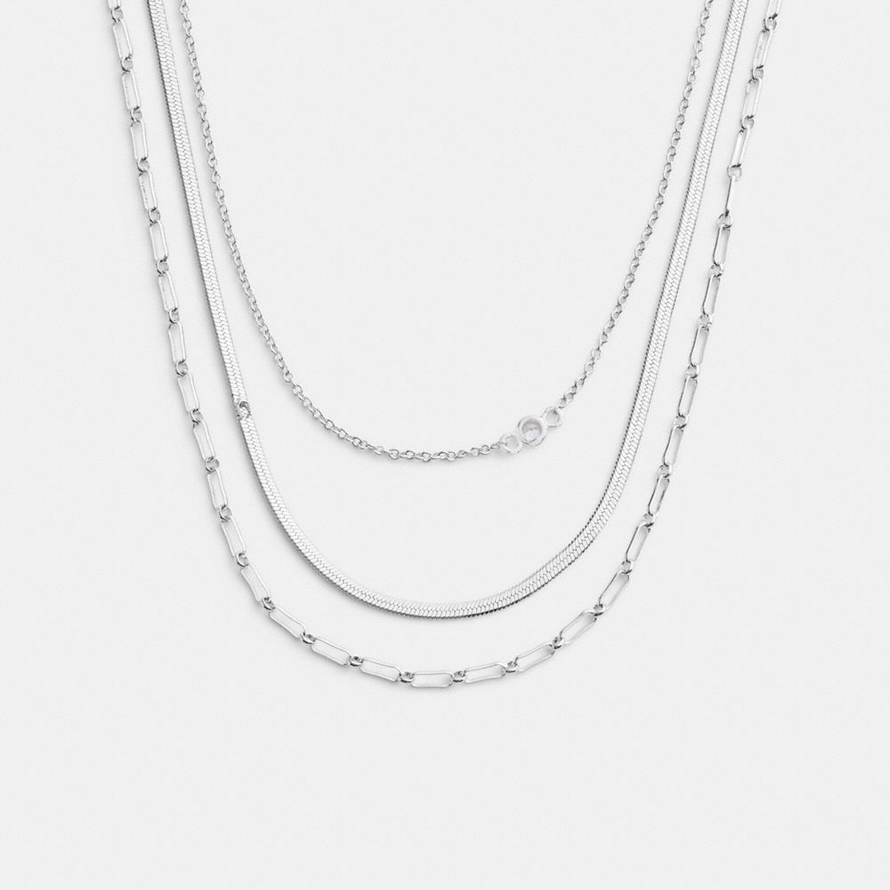 COACH®,Layered Chain Necklace,Layered,Cubic Zirconia,Chain Link,Logo,Lettering Word,Initials Embellishment,Casual,Clear,Detail View