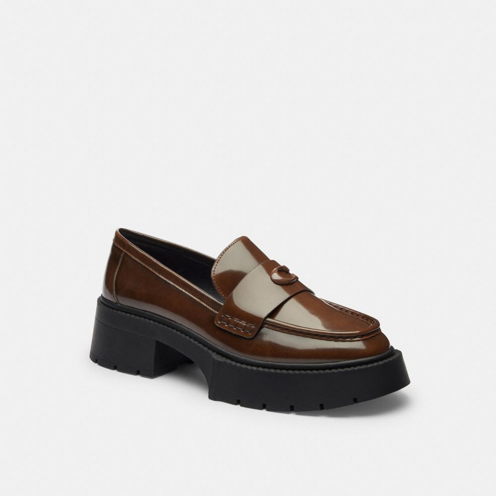 Kick it up a notch. Set on a chunky ‘90s-inspired lug sole, our Leah platform loafer takes a timeless style to new heights. Crafted of brushed leather for a glossy two-tone effect, it features cushiony memory foam padding for all-day comfort and is finished with tonal Signature hardware for an iconic Coach look.