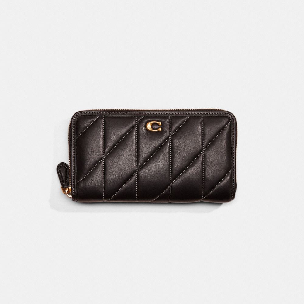 Crafted of quilted plush, ultra-soft leather, this expandable design unzips to reveal a spacious interior. It holds an iPhone X and features 12 card slots, two full-length bill compartments and a coin pocket to keep essentials organized.