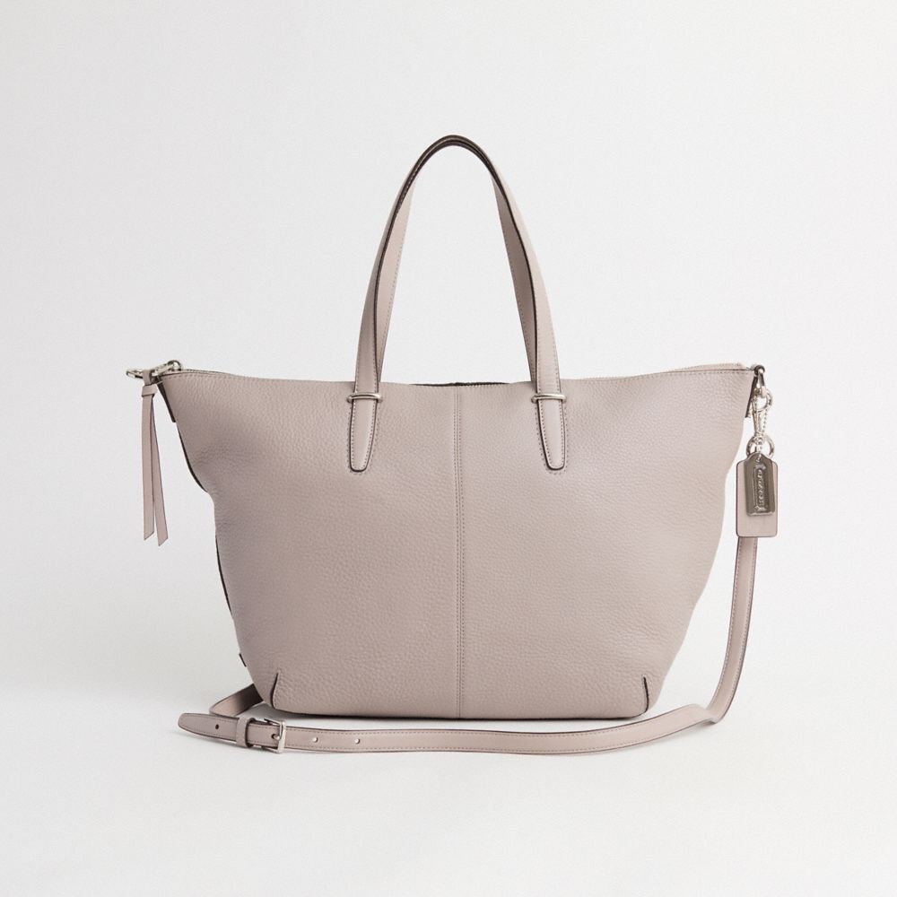 This slouchy Bleecker satchel is crafted of luxuriously textured pebbled leather with a beautiful drape. The spacious zip-top design has a clean look, with dimensional edge-painting, a leather zipper pull and striking hardware.