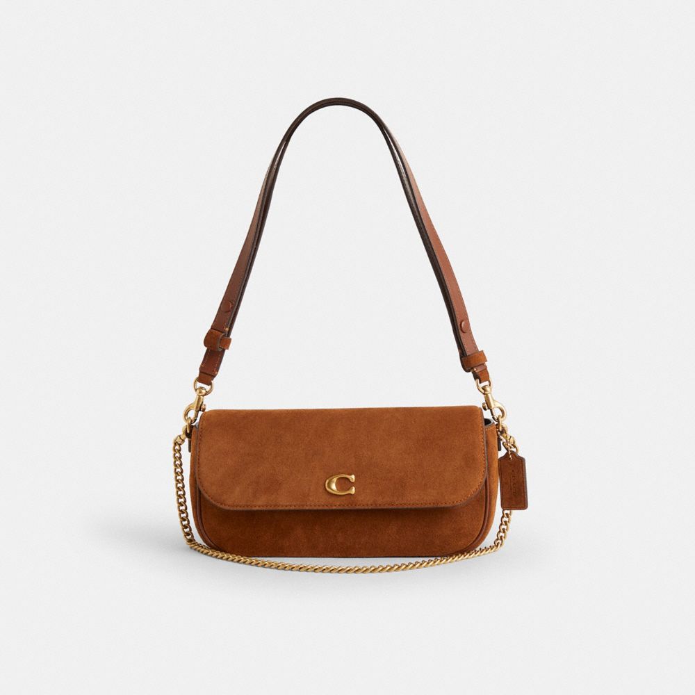 A versatile style for day and night, our flap-front Brook bag has a short gleaming chain strap and a convertible leather strap to wear as a crossbody or doubled up for a shorter, dressier look. With space to hold all the essentials, the rounded velvety suede and refined leather design features a convenient outside pocket and inside multifunction pockets for easy organization. It’s finished with our Signature hardware for a heritage touch.