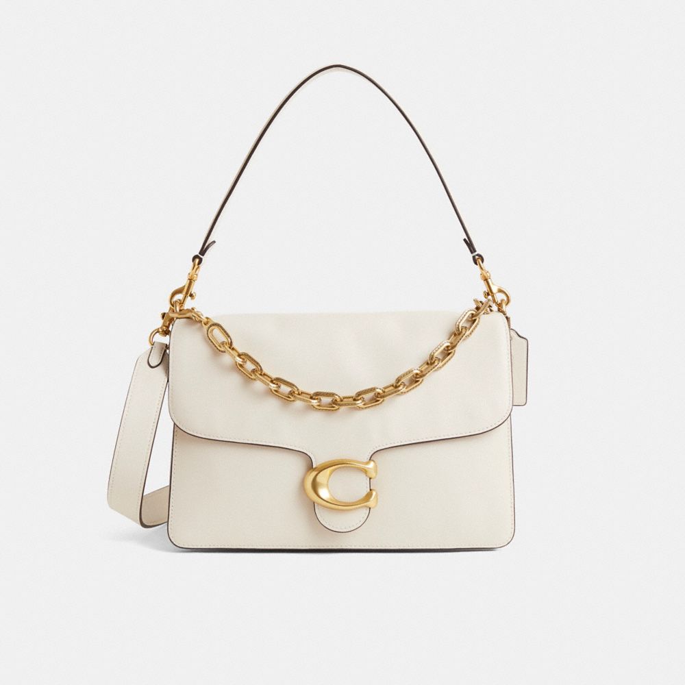 A modern take on an archival 1970s Coach design, our structured Chain Tabby shoulder bag is crafted of drapey soft grain leather with a subtle sheen. Finished with our Signature hardware for an iconic touch, the roomy style has space for all the essentials including an iPad, inside multifunction organizational pockets and a convenient outside zip pocket for easy access items. The versatile design is finished with three detachable straps to carry by hand, wear snug on the shoulder with the elegant stitched chain-link strap and short leather strap or go hands-free with the long leather crossbody strap.