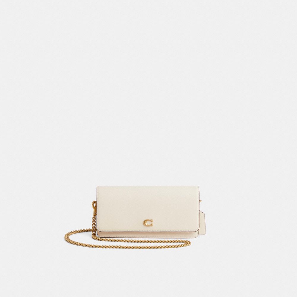 Form, function and craftsmanship combine on our refined leather Evie Long Wallet. Detailed with our Signature hardware, it has a convenient outside pocket and a spacious interior with multiple card slots, a billfold compartment and a zip pocket for coins, plus space for the largest size phone. Toss in a bag, carry as a clutch or wear crossbody with the detachable gleaming chain strap.