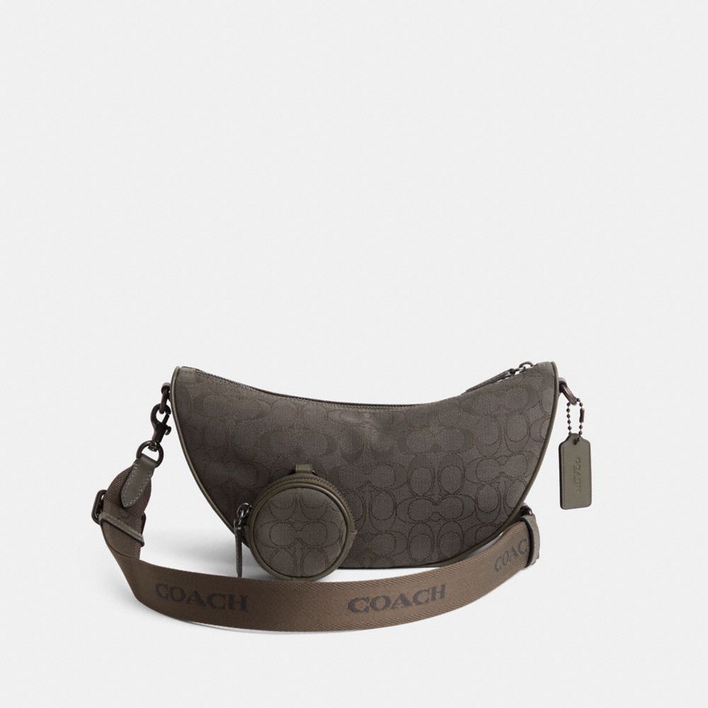 Our Hall is made for doing it all. Crafted of our Signature jacquard and refined leather, this sporty sling carryall has a spacious interior with room for all the essentials including the largest iPhone. It’s finished with a tonal webbing strap featuring a convenient detachable pouch to hold small essentials.