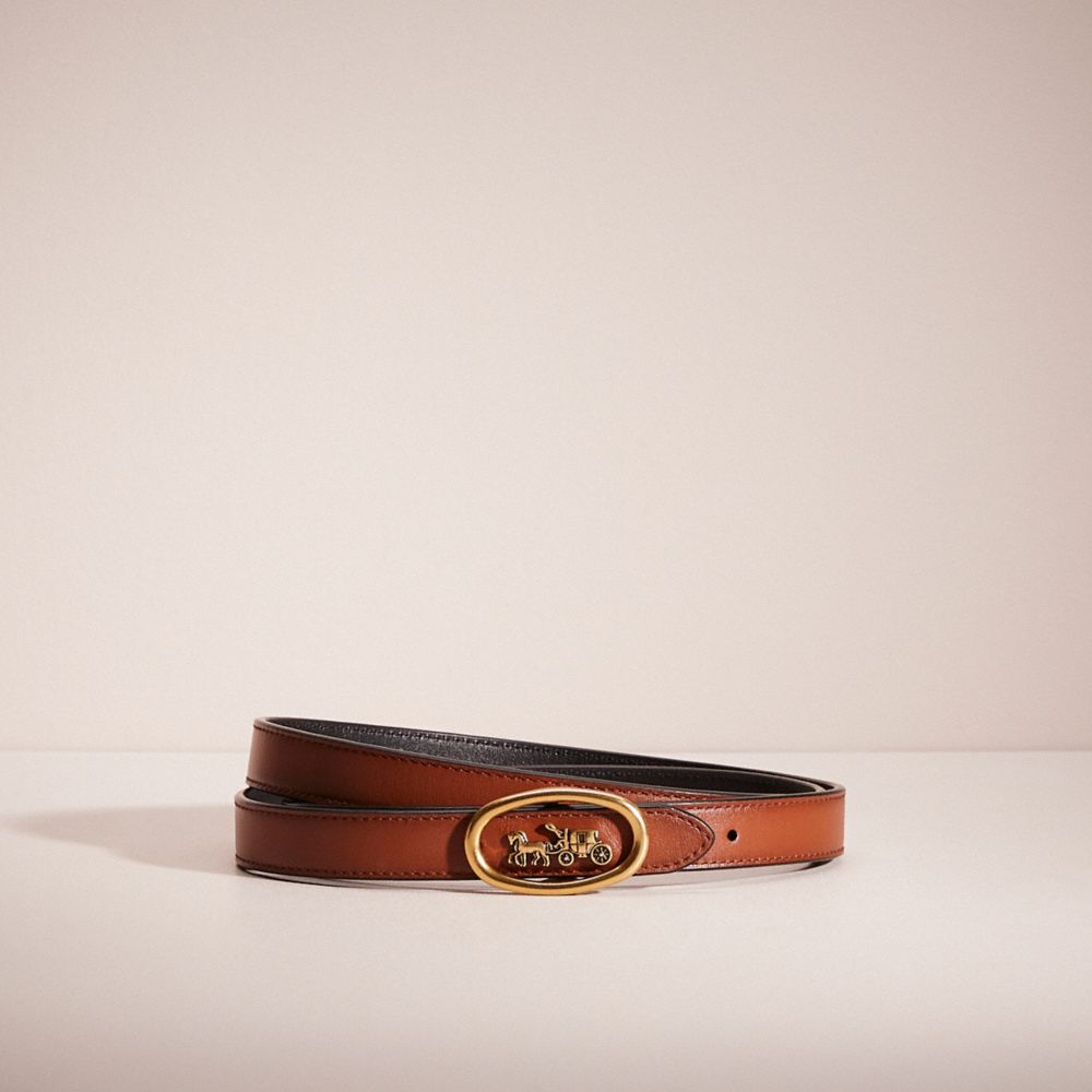 A little (re)love goes a long way. This Horse and Carriage Buckle Reversible Belt is a gently worn design restored to its original condition by the talented craftspeople at our Coach Repair Workshop. Passed along from members of the Coach community like you, it helps to keep bags out of landfills and reduces our impact on the environment—part of our commitment to doing better for the planet (and all of us). A feel-good find, it’s your chance to get one of our most-loved styles if you missed out the first time. Wear it, love it, pass it on.