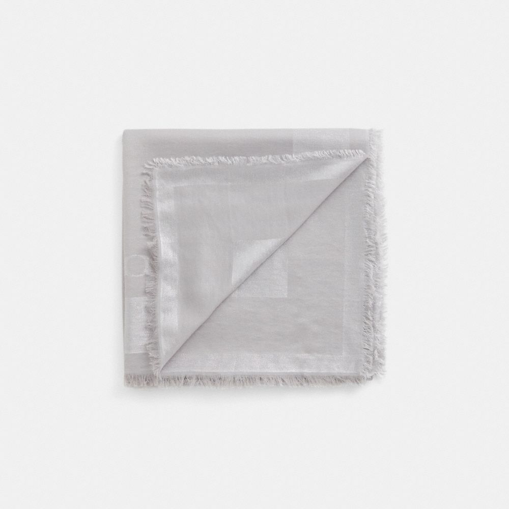Soft and lightweight, this oversized square scarf features our iconic Coach Horse and Carriage front and center. Shimmering with subtle Lurex threads, it's finished with a solid border and delicate fringe trim.