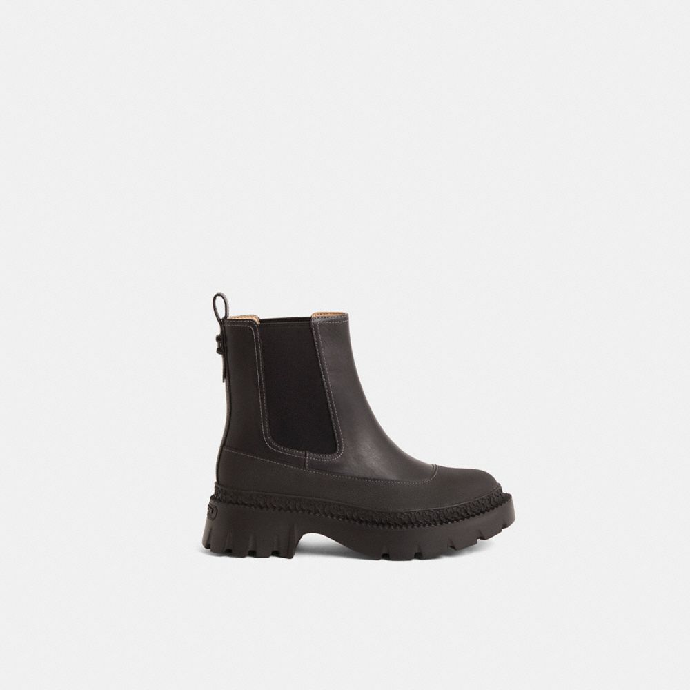Ready to rise to any occasion, our Jayla bootie sits on a tough-luxe chunky lug sole. Crafted in a mix of smooth and matte leather, the easy pull-on style features a padded footbed for all-day comfort, ribbed ankle gores for on-and-off ease and a back pull tab detailed with our tonal Signature.