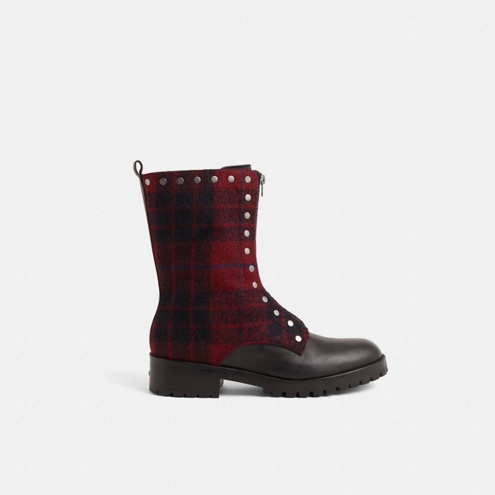 Inspired by classic military styles, the Lara bootie is crafted of rich leather and a bright heritage plaid. The streamlined, zip-front style is embellished with polished rivets for downtown edge and features a rubber lug sole for lasting comfort.