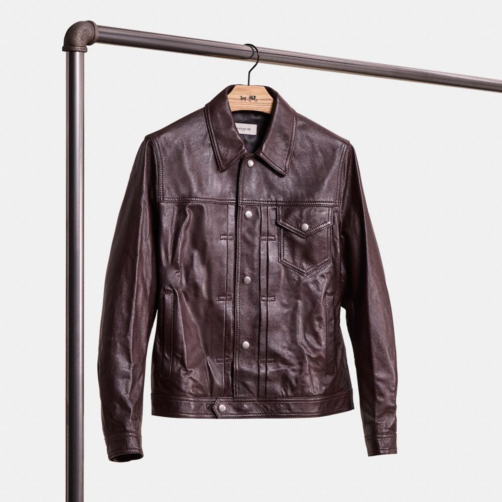 Blend the rugged spirit of vintage workwear with super soft Coach leather in this Trucker jacket. The minimalist classic-fit style is finished with polished snap closures.