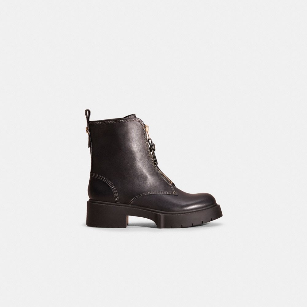 Featuring a chunky ‘90s-inspired lug sole, our Liza is a tough-luxe bootie inspired by classic military styles and New York City grunge. Crafted of smooth leather, it has a knotted detail front zip closure and cushiony memory foam padding for all-day comfort.