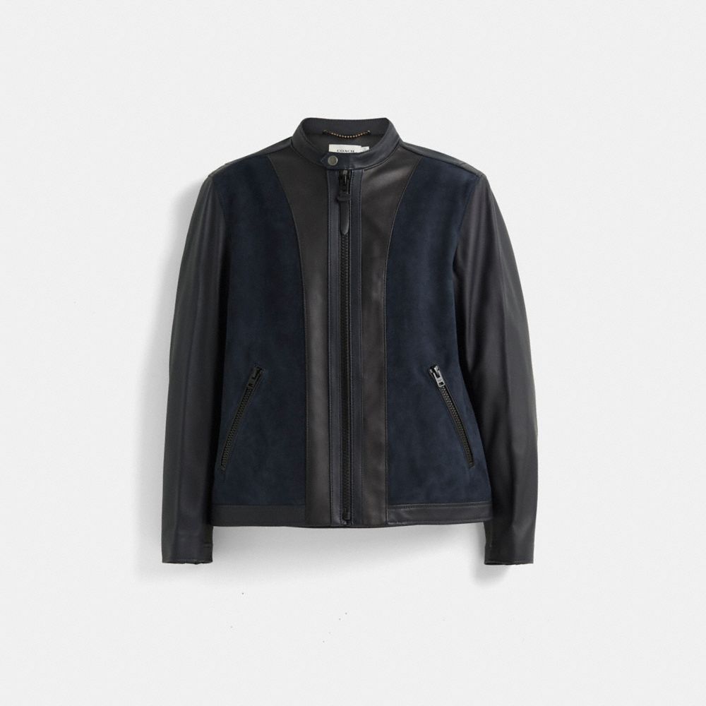 Update your go-to leather jacket with this racer crafted in a mix of contrasting leather and suede. An iconic Coach silhouette, the classic-fit design is finished with a snap tab collar and zip pockets.