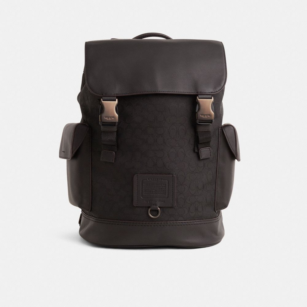Like the New York City street it's named after, Rivington mixes downtown cool with professional good looks. This soft backpack is crafted of our lightweight, water-resistant Signature jacquard, making it the perfect bag for every day. Finished with our lightest weight leather, it has mesh spacer panels, room for a 15" laptop and multifunction pockets to keep everything neat and organized.