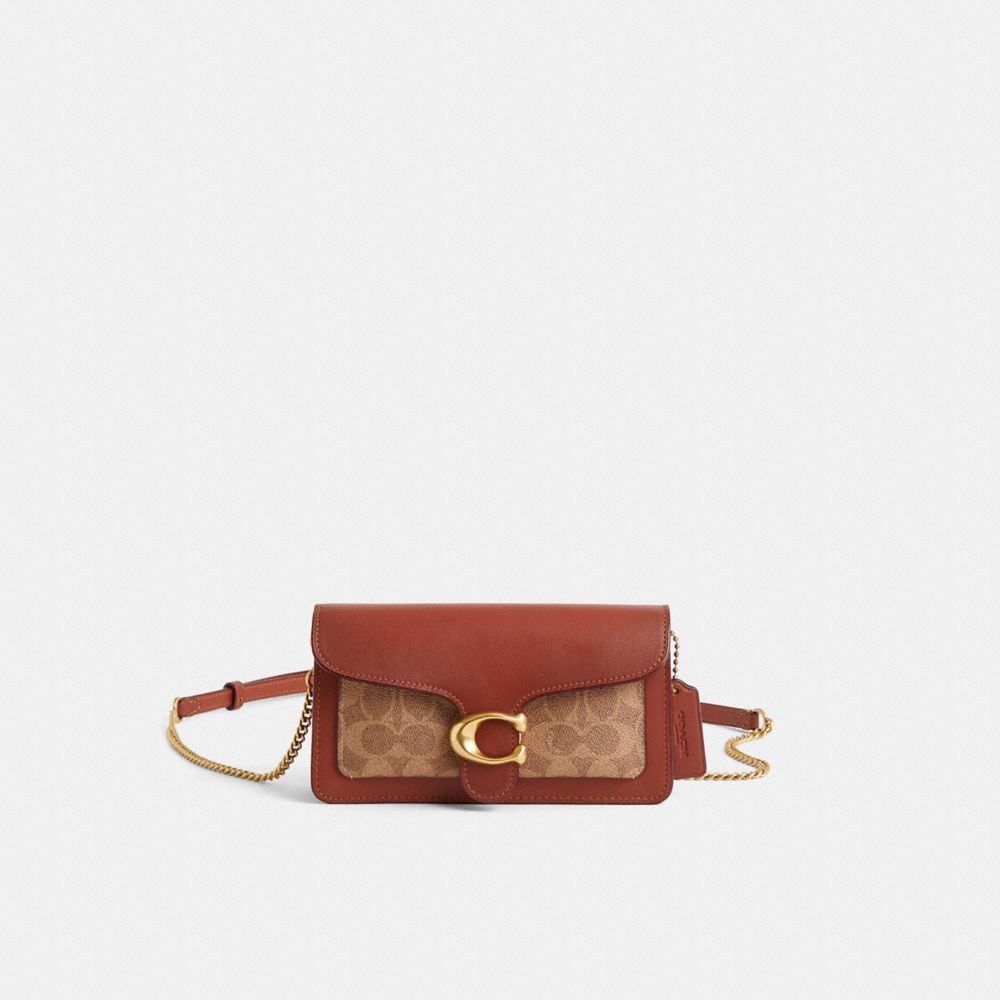 A modern take on an archival 1970s Coach design, our structured Tabby clutch is crafted in a mix of refined leather and our Signature canvas. Finished with our Signature hardware, this organized, three compartment design has a secure interior zippered compartment and an exterior slip pocket for easy access to essentials. The versatile bag can be carried as a clutch without the elegant leather-and-chain strap or worn crossbody, making it the perfect choice for both dressed up and casual looks.