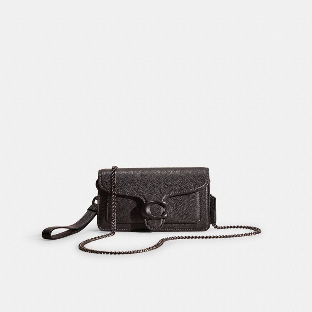 A modern take on an archival 1970s Coach design, our structured Tabby wristlet is crafted of polished pebble leather. Finished with our Signature hardware, it's perfectly sized for cards, cash and a phone with an exterior slip pocket for easy access to essentials. The versatile style can be carried as a wristlet or a clutch and worn crossbody with the elegant chain strap.