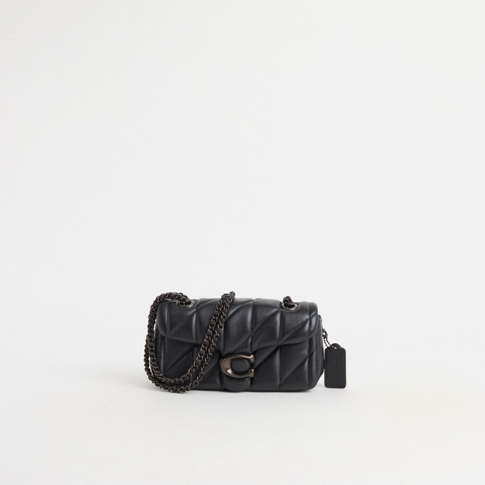 A modern take on an archival 1970s Coach design, our structured Tabby shoulder bag is crafted of quilted plush, ultra-soft nappa leather. Slightly smaller than the 26, the petite 20 features a long leather chain strap to wear crossbody or double up for a shorter, dressier look. It’s finished with our Signature hardware for an iconic touch.