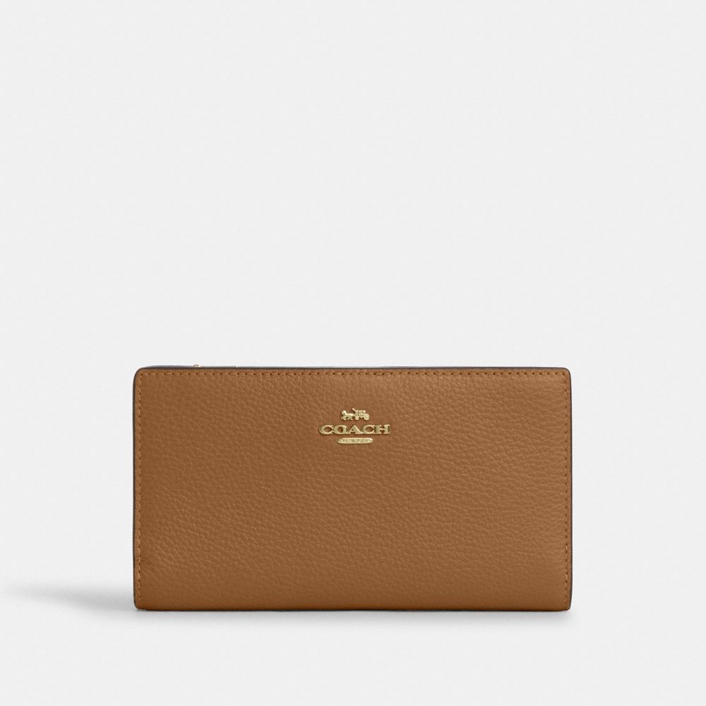 COACH®,Slim Zip Wallet,Leather,Pouch,Casual,Brown,Front View