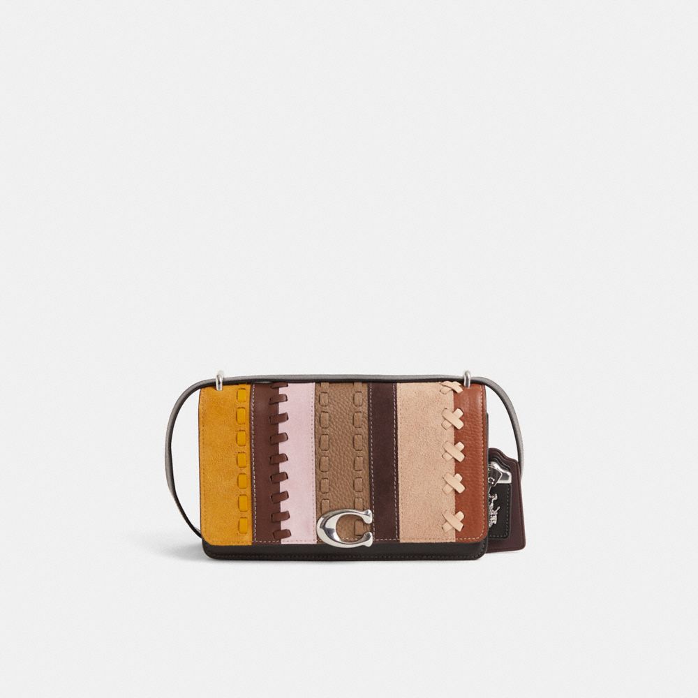 Reimagined with a vibrant linear patchwork mix by Eunice Chang featuring hand-laced whipstitched detail for an artisanal finish, this sophisticated style has been expertly cleaned, conditioned and restored. Our talented craftspeople Nicole Izquierdo, Fernando Gutierrez and Yngrid Pichardo Baez incorporated Coach remnants finished with a medley of rich whipstitching to the flap, replaced the pushlock closure, refreshed the exterior, flap underside and back pocket, then added a playful repurposed charm. Detailed with our C pushpin closure, the flap front Bandit is crafted of luxe refined leather. It features two organized compartments, a secure interior snap pocket and a shoulder strap that adjusts for crossbody wear.