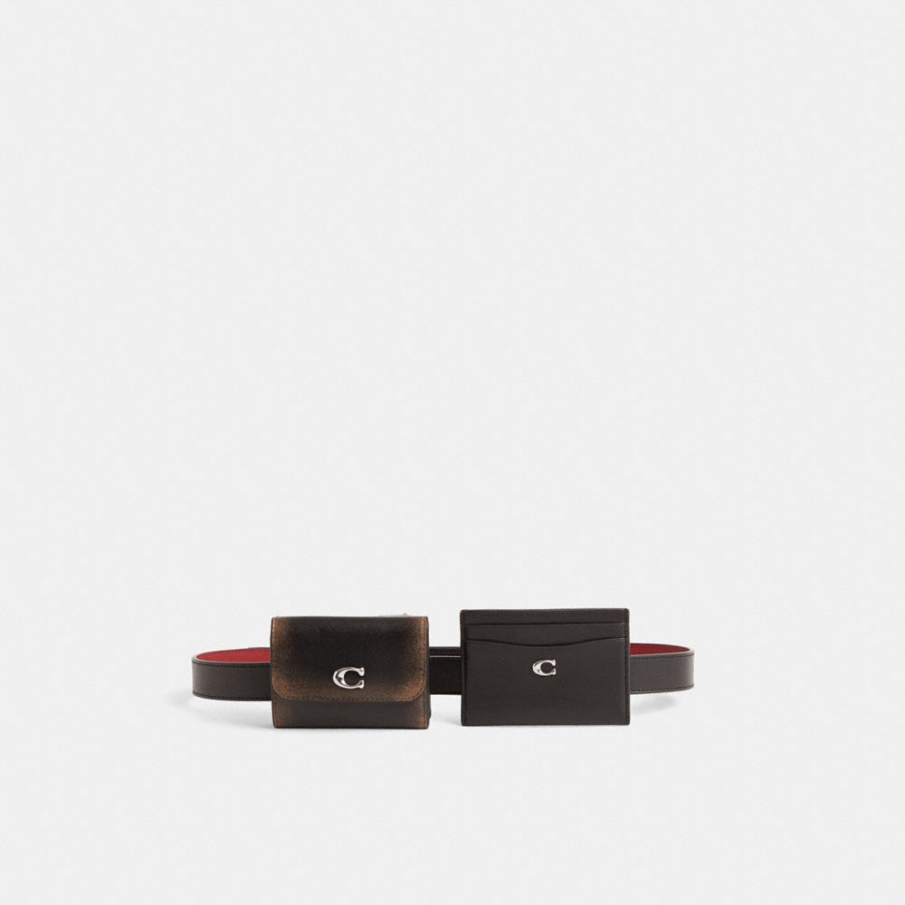 Reimagined as an ultra-convenient hands-free belt bag by Savannah Sutton, this hybrid style has been expertly cleaned, conditioned and restored. Our talented craftspeople Alfred Deaza and Yngrid Pichardo Baez attached belt loops to the back of the card case and wallet, threaded them onto a repurposed leather belt, replaced snaps, affixed a heart patch to the inside of the case, then added a feather pin to the wallet and a playful repurposed charm. Crafted of refined leather detailed with our Signature hardware, the case has four card slots and a center compartment. Crafted of buttery soft glovetanned leather specially treated with a rub-off technique to reveal the base color for a love-worn look, the petite card holder wallet has four card slots and space for bills. Detailed with our Signature hardware, it’s finished with a convenient snap-off card case featuring a hero card slot and expandable zip pocket to use on its own when traveling light.