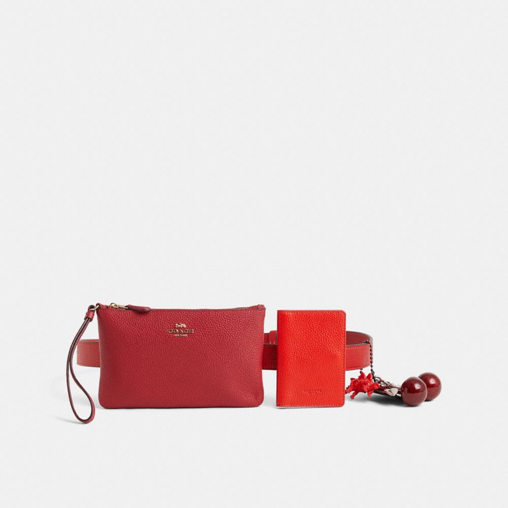 Reimagined as an ultra-convenient hands-free belt bag by Andrew Kaefer, this hybrid style has been expertly cleaned, conditioned and restored. Our talented craftspeople Angel Penaloza, Fernando Gutierrez and Yngrid Pichardo Baez attached belt loops to the back of the wallet and wristlet, threaded them onto a repurposed leather belt and added a playful repurposed charm. Crafted of smooth leather, the slender card wallet features three card slots and open pockets in a neat bifold design, while the polished pebble leather wristlet is perfectly sized for cards, cash and a phone.