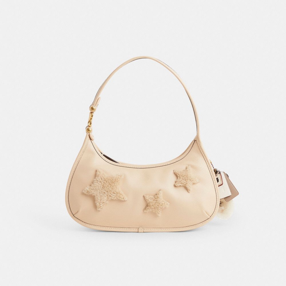 Reimagined by Eunice Chang with a star-struck motif in luxuriously soft shearling, this hobo style has been expertly cleaned, conditioned and restored. Our talented craftspeople Nicole Izquierdo and Fernando Gutierrez hand-decorated the front with tonal shearling star appliqué, refreshed the lining, repaired the tacking on the strap, then added a playful repurposed charm. Eve takes you from day to night in style. The spacious design is crafted of our buttery soft glovetanned leather and features a wide, comfortable shoulder strap accented with our Signature hardware.