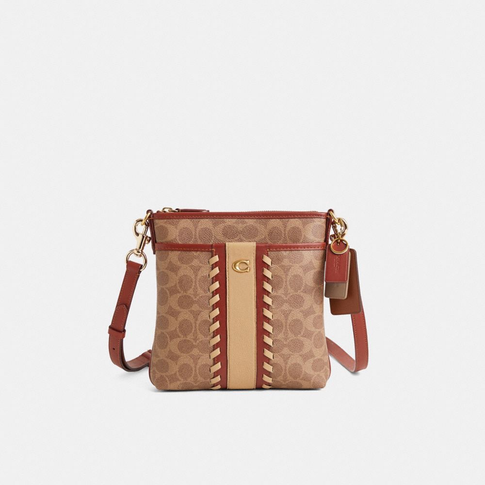 Reimagined by Eunice Chang with tonal hand-laced whipstitching for artisanal finish, this streamlined style has been expertly cleaned, conditioned and restored. Our talented craftspeople Nicole Izquierdo and Yngrid Pichardo Baez outlined the Varsity stripe with sleek whipstitching, affixed tender heart patches to the front pocket, refreshed binding and interior, repaired the strap dogleash and added a playful repurposed charm. Crafted of refined leather and our Signature canvas, the Kitt Messenger is finished with a sporty Coach Varsity Stripe. An exterior pocket gives easy access to essentials.