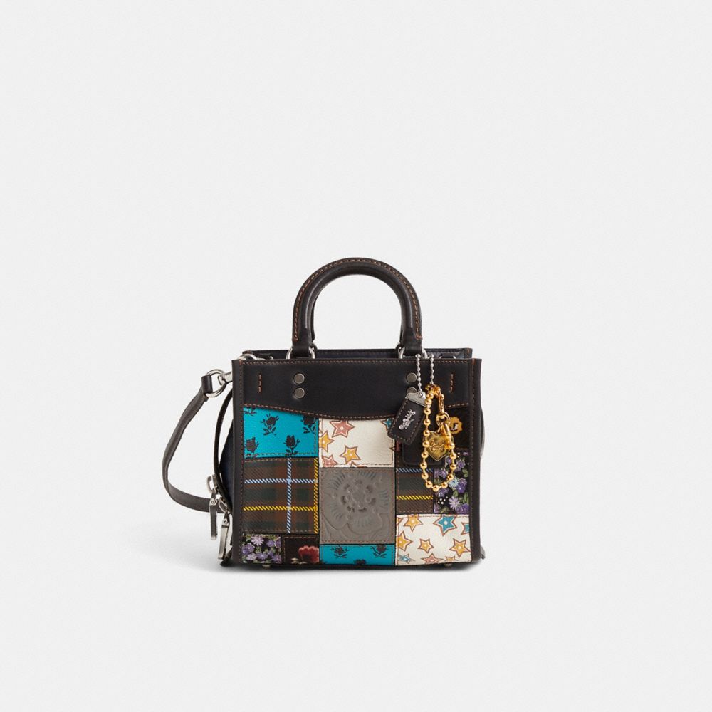 Reimagined with a dynamic patchwork mix by Eunice Chang featuring celestial stars, botanical blooms, heritage plaids and Southwestern-inspired tooled leather detailed with our Tea Rose motif, this compact style has been expertly cleaned, conditioned and restored. Our talented craftspeople Fernando Gutierrez, Nicole Izquierdo and Yngrid Pichardo Baez incorporated Coach remnants to the front, replaced the edge binding, tightened the long strap keeper and added a playful repurposed charm. Inspired by free spirits, rebels and dreamers, the aptly named Rogue is a go-anywhere bag crafted of our buttery soft glovetanned leather printed with a rich heritage plaid on back. The 20 features three organized compartments and detachable straps for shoulder or crossbody wear.